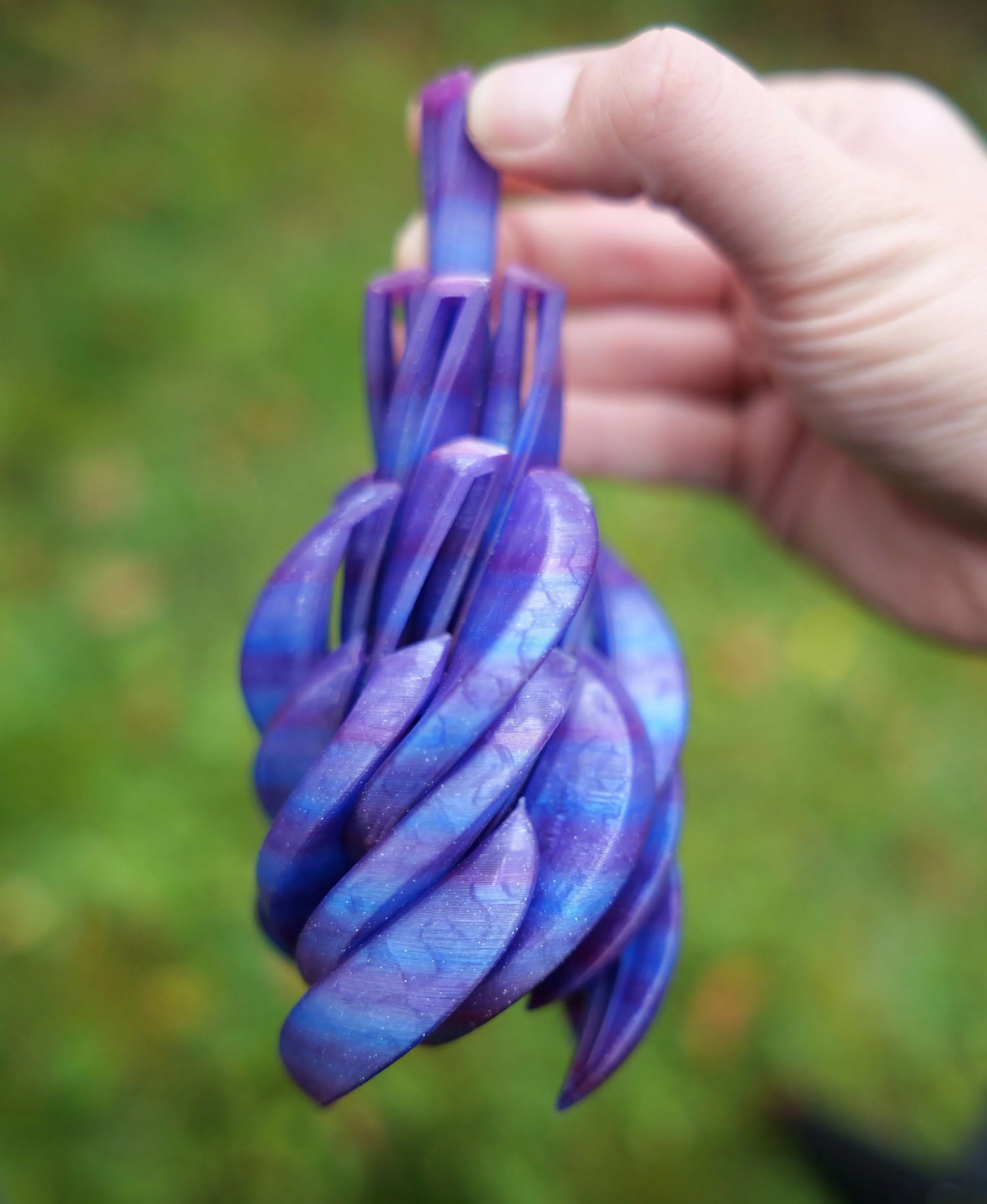 Jede leichte Drehung bewirkt eine Verschiebung und Kräuselung der inneren Schichten – als würde man tropfendem Schleim zusehen –, aber ohne klebrige Masse, ohne Schmutz und ohne Aufräumen.