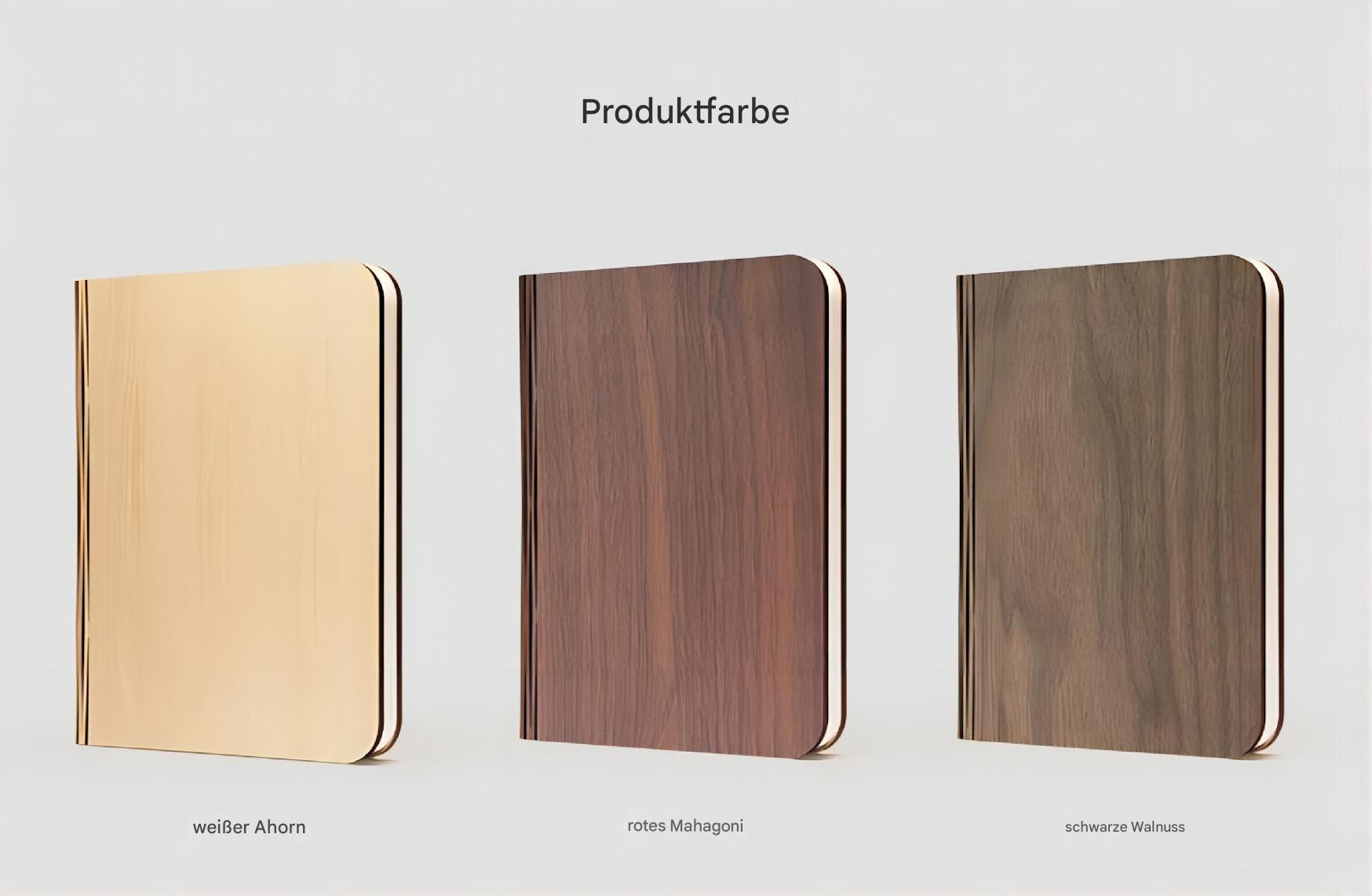 Es unterstützt USB-Laden und das mitgelieferte Ladekabel kann an eine Steckdose, eine Powerbank oder einen Computeranschluss angeschlossen werden, um bequemes Laden ohne Kabelgewirr zu ermöglichen. Es ist außerdem faltbar und tragbar, sodass es sich problemlos zu Hause oder unterwegs verwenden lässt. Erhältlich in verschiedenen Holzausführungen, darunter Weißahorn, Rotmahagoni und Schwarzmahagoni, passt es zu jedem Stil und ist sowohl ein praktischer Beleuchtungsassistent als auch ein stilvolles Dekorationsobjekt.