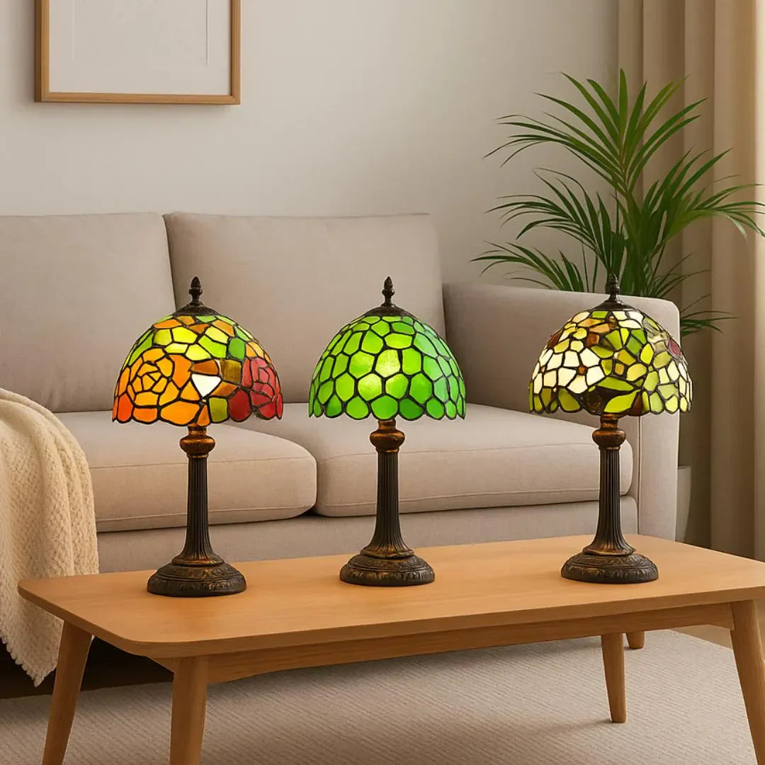 🎨Eine perfekte Mischung aus handgefertigter Kunst und modernem Wohnen: Inspiriert vom klassischen Tiffany-Stil verfügt jede Lampe über einen robusten farbigen Glasschirm, einen langlebigen Sockel aus Harz oder Legierung und ein antikes Bronze-Finish. Ob beleuchtet oder unbeleuchtet, diese lebendigen Designs sind eine auffällige Ergänzung und fügen sich nahtlos in moderne und traditionelle Interieurs ein. Diese Lampen sind mehr als nur Beleuchtung, sie sind Gesprächsstarter und verwandeln jede Ecke Ihres Zuhauses in ein stilvolles Schaustück.